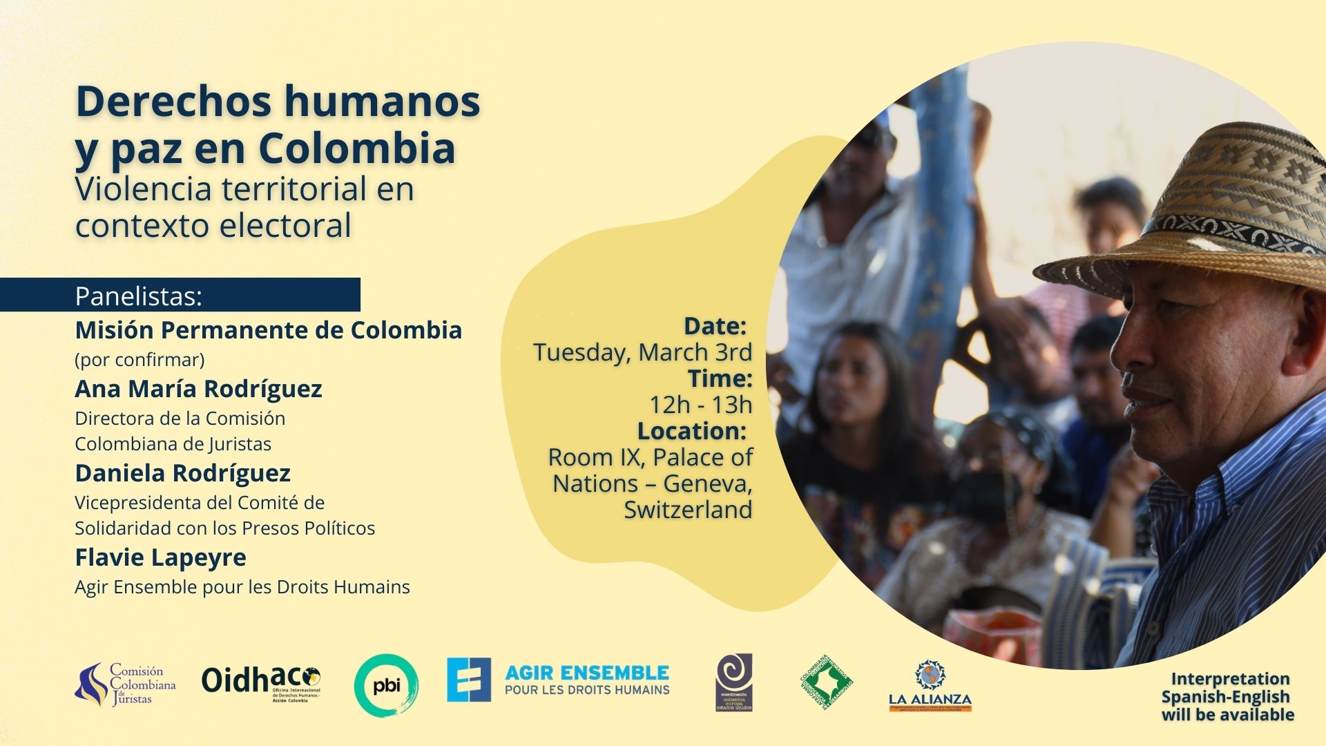 In cooperation with the Colombian Commission of Jurists (CCJ) and the International Office for Human Rights Action Colombia (OIHDACO), PBI will organize a side event at the United Nations that will address the impact of increased territorial violence in Colombia during the electoral period, which particularly affects human rights defenders, social leaders, and communities.